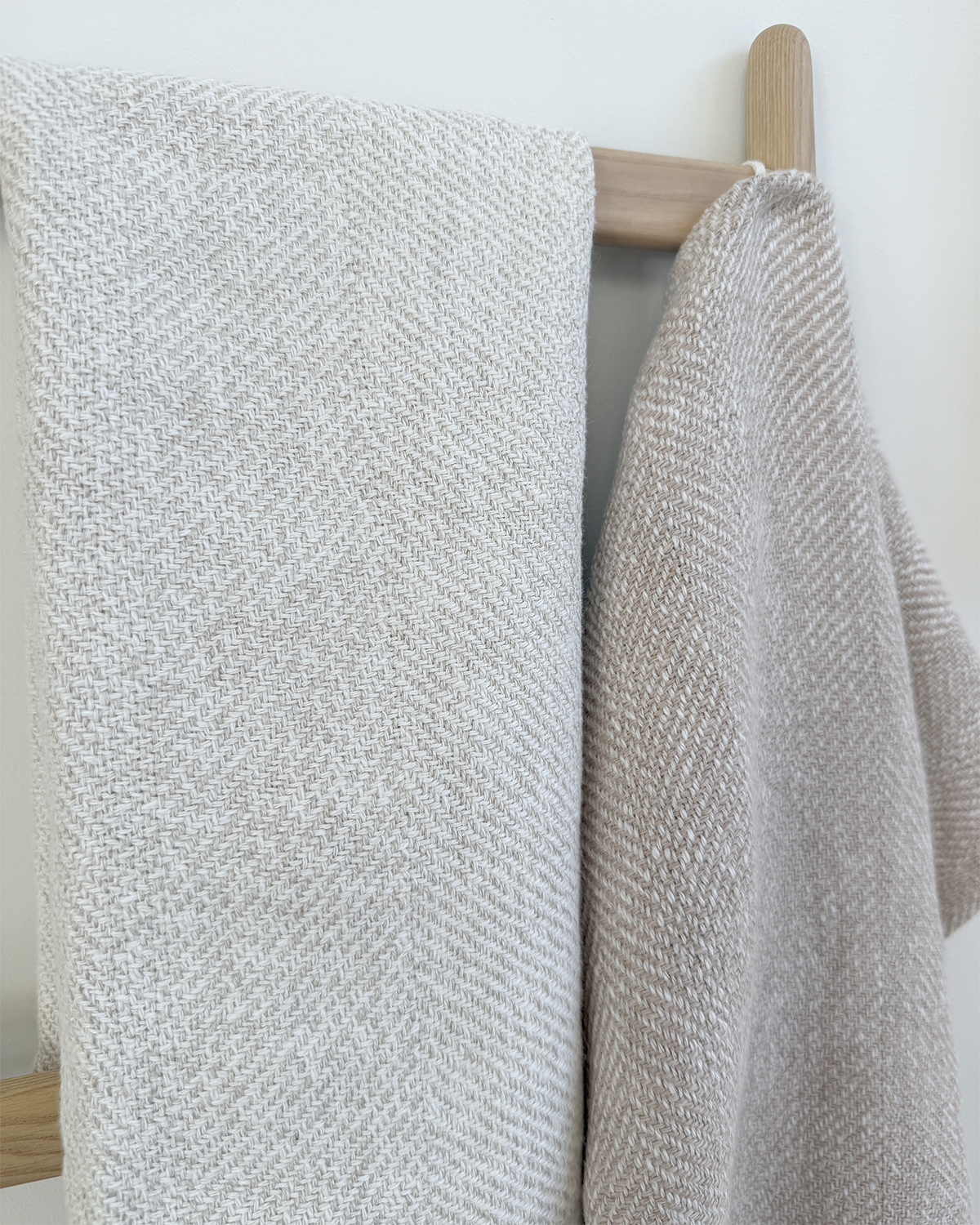 Assorted cotton and cotton-linen towels in a variegated herringbone threading.